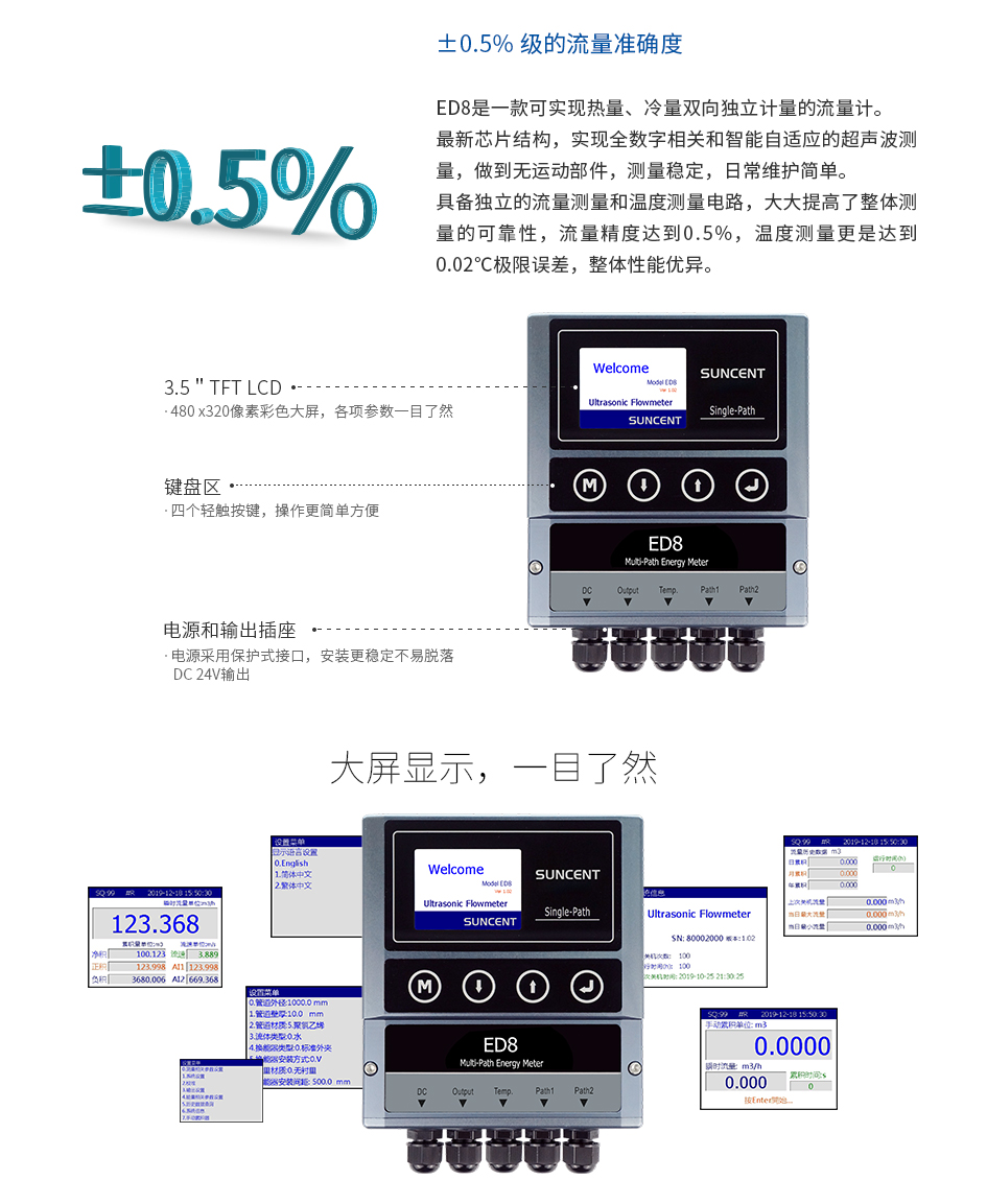 ED8是?款可實現熱量、冷量雙向獨?計量的流量計